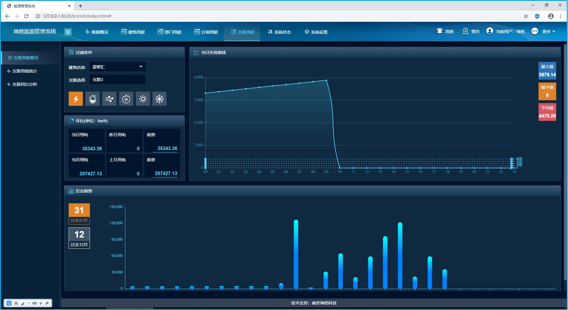 系統(tǒng)可以對(duì)建筑物各支路用能進(jìn)行遠(yuǎn)程集抄,并可查詢(xún)儀表的各類(lèi)參數(shù)(電壓、電流等),并以圖形方式顯示;系統(tǒng)使用者可通過(guò)相關(guān)界面調(diào)取各節(jié)點(diǎn)的電能統(tǒng)計(jì)報(bào)表,減少用能的“跑、冒、滴、漏”和計(jì)量誤差。