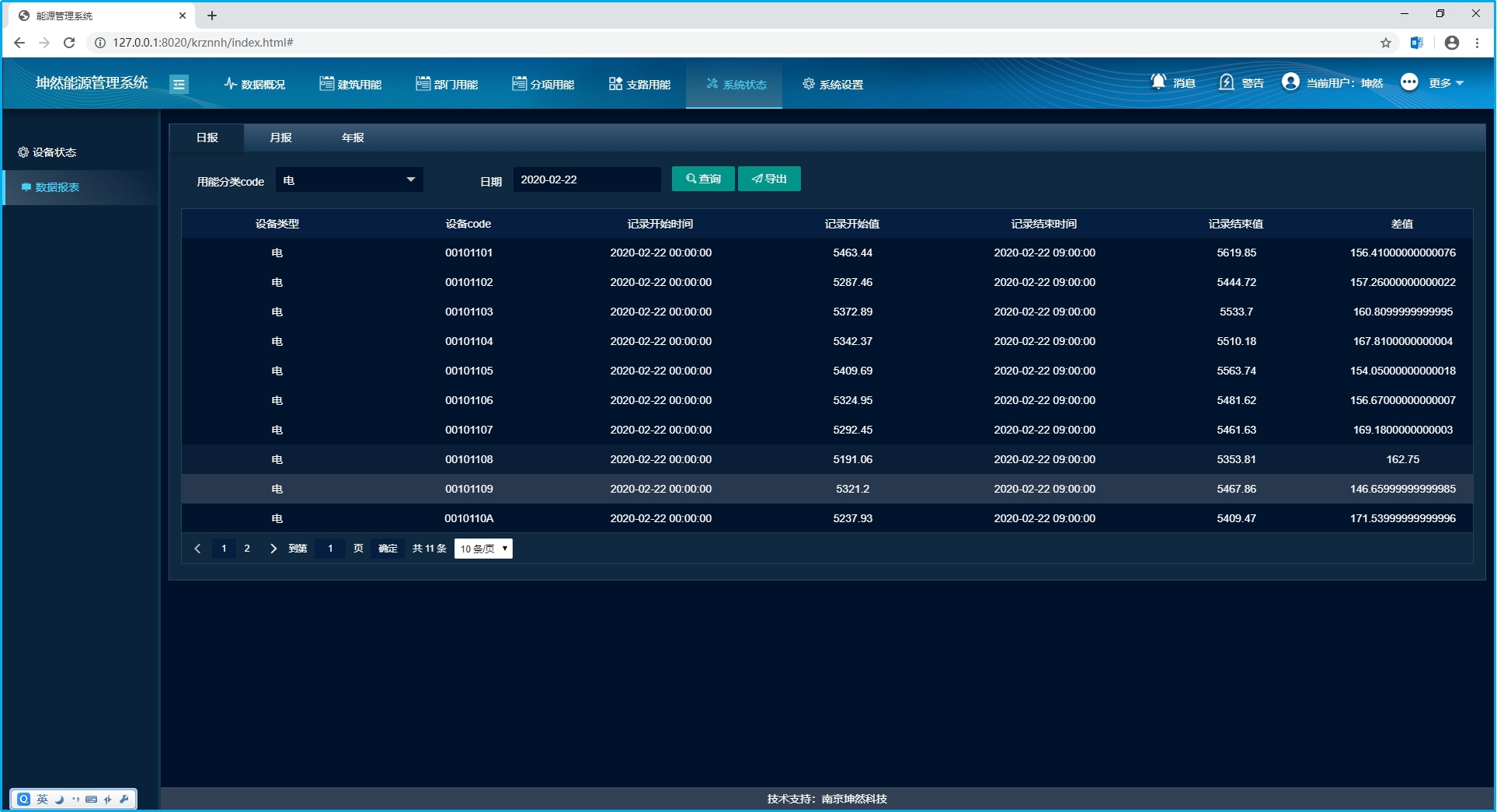 系統(tǒng)可根據(jù)企業(yè)需要,對(duì)每個(gè)設(shè)備進(jìn)行日?qǐng)?bào)、月報(bào)、年報(bào)統(tǒng)計(jì),并將統(tǒng)計(jì)后的數(shù)據(jù)導(dǎo)出成Excel表格